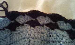 ثم ترك 2 غرزة ثم 5 عمود فى الثالثة ( الصدفة )